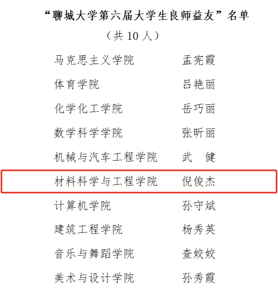 近日,韦德官方网站完成第六届“老员工良师益友”评选工作,材料科学公司高度重视、积极落实,经多层评选,公司倪俊杰教授当选。