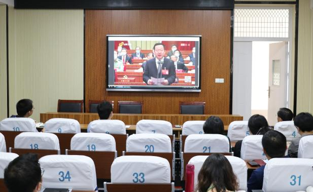 2022年5月28日,bevictor韦德国际于5号实验楼202会议室组织全体教师收看中国共产党山东省第十二次代表大会开幕式。