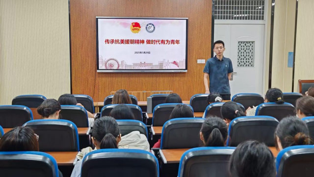 齐亚伟老师从《为什么要打这场仗》《他们靠什么赢》以及《我们能做什么》三个方面进行了阐述,他表示,同学们要从抗美援朝精神中汲取力量,将个人成长与国家发展紧密结合,努力成为有理想、敢担当、能吃苦、肯奋斗的新时代好青年。