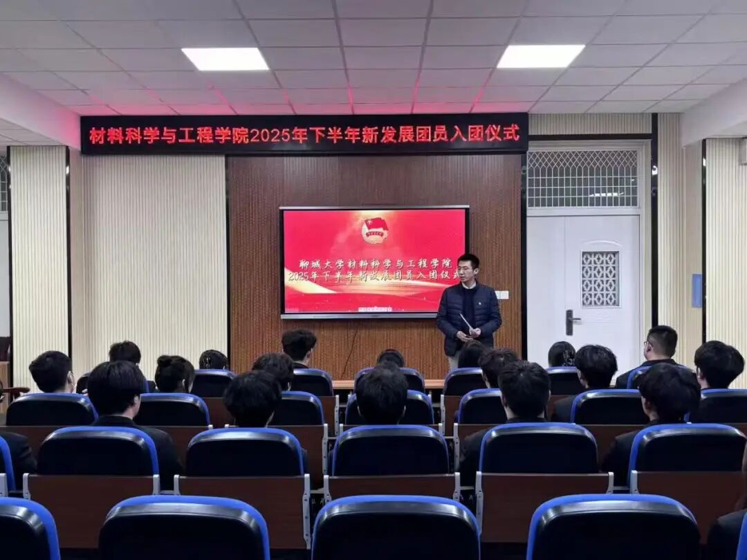 齐亚伟老师向新团员表示热烈祝贺与诚挚欢迎,并对大家提出殷切期望。他强调,新团员应珍惜团员身份,坚定理想信念,做有追求的新时代青年;要始终听党话、跟党走,使青春航向与时代同行;要牢记庄严誓言,在同学中发挥模范带头作用,不负组织与师长的培养,在新时代画卷中书写绚丽的青春篇章。