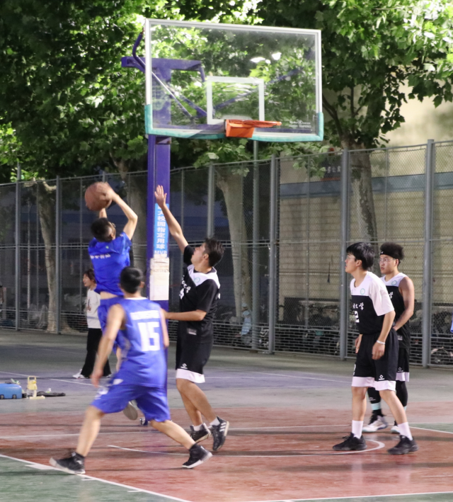 随着一声哨响,比赛正式开始,师生双方迅速进入状态,抢球、传球、投篮,队友间紧密配合,记分板上的数字不断变化,双方球员们愈战愈勇。投球时动作潇洒,拦球时针锋相对,激烈的竞赛对抗配合着双方球员精彩的抢断、帅气精准的投篮,引球员和观众发出声声喝彩。中场休息时,双方球员紧张地讨论着分工配合。球赛仍在进行,球员们精力充盈,跳跃、拦球,每一次进球、每一声呐喊,都是对篮球的热爱、对比赛的投入。最终,毕业生们在韦德官方网站的最后一场篮球比赛中成功战胜了老师,以青春的炽热为自己的老员工涯画上了圆满的句号。