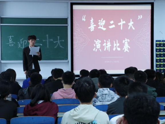 2022年10月8日,bevictor韦德国际于4#B310举办“喜迎二十大”主题演讲比赛。各位同学积极报名参加,特邀程升洋、张成硕、王水莲等10名员工干部担任此次比赛评委。