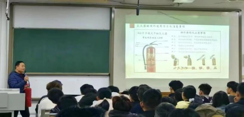 为加强校园消防安全管理,提高员工的安全意识,2023年11月17日,bevictor韦德国际于4#B304开展消防安全培训及仿真灭火器现场操作演练活动,特邀安全保卫处马国栋老师担任主讲,团委辅导员陆含老师和2023级全体新生参加本次活动。