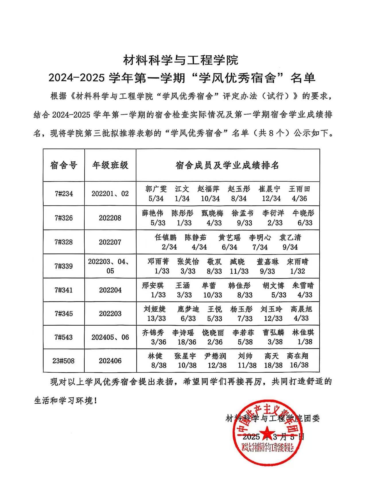 本次“学风优秀宿舍”评选活动是根据《bevictor韦德国际“学风优秀宿舍”评定办法(试行)》的要求,结合2024-2025学年第一学期的宿舍检查实际情况及第一学期宿舍学业成绩排名,现将公司第三批拟推荐表彰的“学风优秀宿舍”名单(共8个)公示如下:7#234、7#326、7#328、7#339、7#341、7#345、7#543、23#508。公司为以上“学风优秀宿舍”发放学习用品奖励,并为宿舍成员在综合测评中予以适当加分。