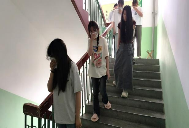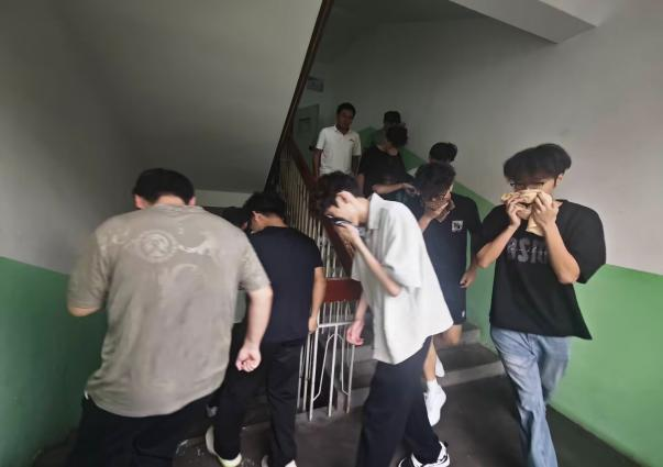 下午2时30分,伴随着急促的警哨声响起,演练正式拉开帷幕。各楼层应急引导员迅速抵达指定岗位,严格按照《宿舍消防安全应急预案》流程,引导员工进行安全疏散。参演员工闻令而动,熟练运用消防应急知识,以湿毛巾掩口鼻、俯身低姿前行,沿安全通道向室外应急避险区域有序撤离。两栋公寓楼全体参与演练同学仅用时2分钟完成安全疏散,整个过程紧张有序、行动规范,充分彰显了学经理期以来消防安全教育与应急演练的显著成效。