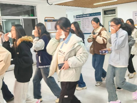 当日下午两点,警哨声骤然响起,员工们迅速作出反应,在员工干部的引导下,严格遵循宿舍消防安全应急预案流程,用湿毛巾捂住口鼻,沿预设疏散路线快速向公寓外指定安全区域撤离。仅用时2分32秒,公司两栋公寓员工全部安全疏散至集合点,整个过程高效、有序,未出现任何意外情况。