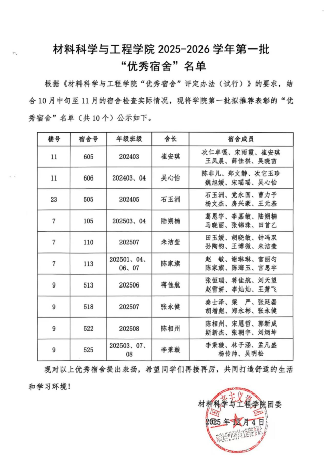 本次“优秀宿舍”评选活动的顺利开展,不仅督促了同学们养成良好的生活习惯,还营造出了温馨、整洁、有序的宿舍环境,增强宿舍成员的自律性和凝聚力,为公司深化生活育人、夯实文明校园建设奠定了坚实基础。