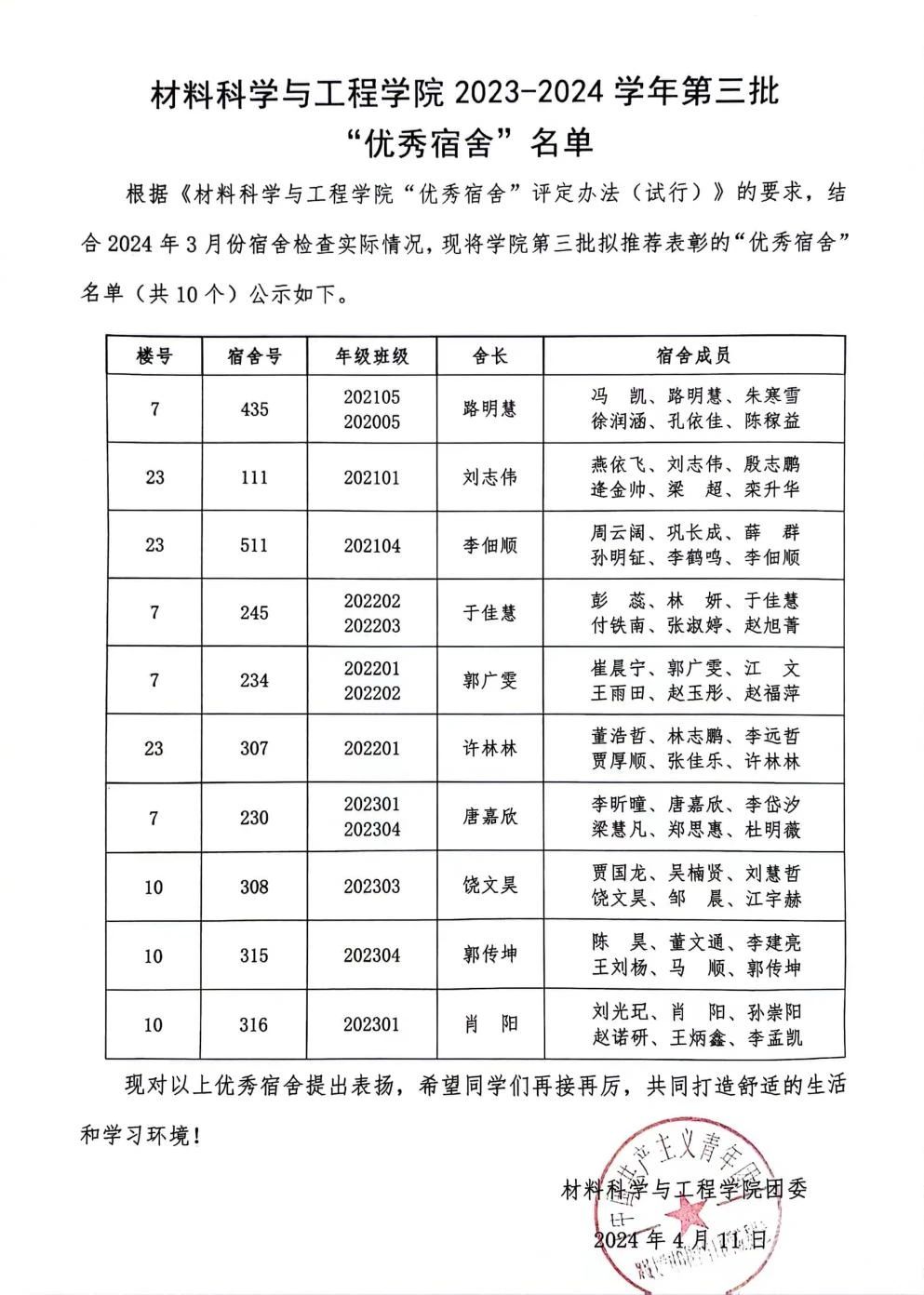 公司开展2023-2024学年第三批“优秀宿舍”评选活动