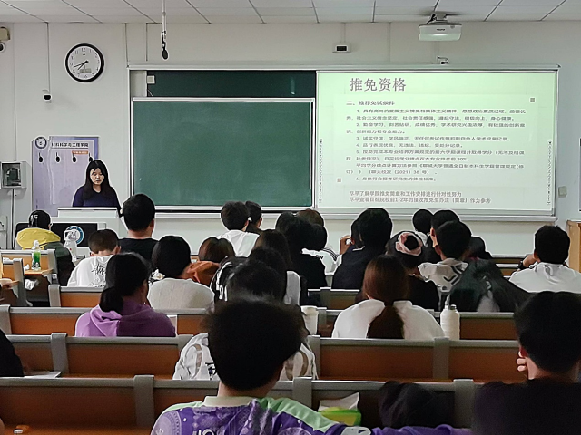 交流会上,保研至南开大学的赵妍同学详细分析了保研资格的条件。她强调,优异的学业成绩与绩点是获得推免资格的首要条件,同时要积极参加各类学科竞赛,以丰富的个人履历来增强推免竞争力。她鼓励同学们勇于挑战自我,不断提升个人综合素质,为未来的保研之路做好充分的准备。