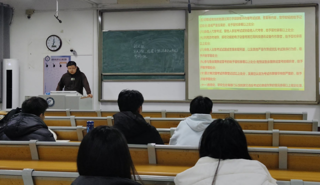 严肃考纪,强化警示。公司结合四六级考试临近、期末考试临近的形势特点,结合公司有关工作要求,及时组织公司全体班级开展考风考纪教育主题班会,广泛引导员工明确本次四六级考试中的明确规定、员工手册中关于《韦德官方网站员工违纪处分管理规定》等详细规定,着重强调考试期间考风考纪的重要性与严肃性,借班级力量厚植考风考纪教育基础。