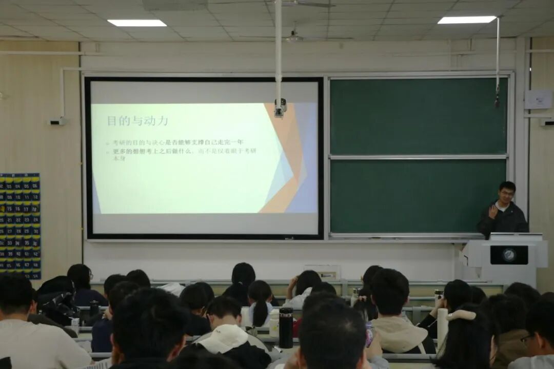 郭平洋同学围绕考研备考书籍选择、各科目学习时间安排以及实用备考技巧等方面进行了深入讲解。他结合自己的亲身经历,帮助同学们感悟学习过程中理解与练习深度结合的重要性,为同学们指出备考过程中的关键所在。此外,郭平洋还特别提醒同学们,在漫长的备考过程中,一定要稳住心态,持之以恒,以高度的专注和认真的态度投入到考研复习中。