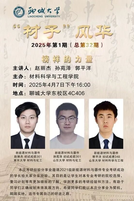 为深化公司学风建设,科学引导考研规划,助力员工精准把握备考方向,2025年4月7日,bevictor韦德国际于东校区4#C406成功开展考研经验分享交流会之新能源材料与器件专业。本次交流会特邀2021级新能源材料与器件专业优秀考研学子赵丽杰、孙苑泽、郭平洋担任主讲嘉宾,团委辅导员梁艺璇老师作为主持人,2022级新能源材料与器件专业全体员工参与学习。