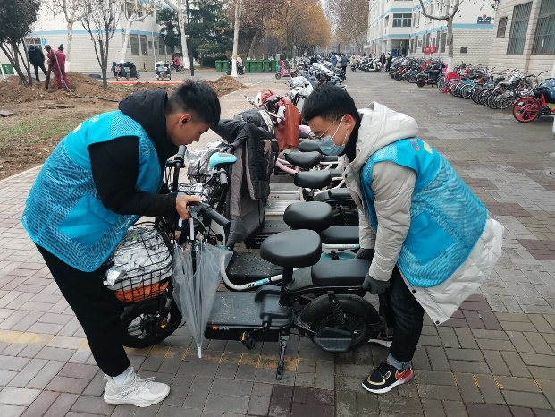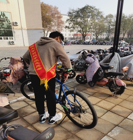 由各班负责人组织班级同学开展校园公益,拣树叶、帮助清理卫生、清扫饮水机、摆放车辆等等。同学们分工精细,认真细致,即使金秋已到,瑟瑟秋风仍吹不走志愿者们似火的热情。