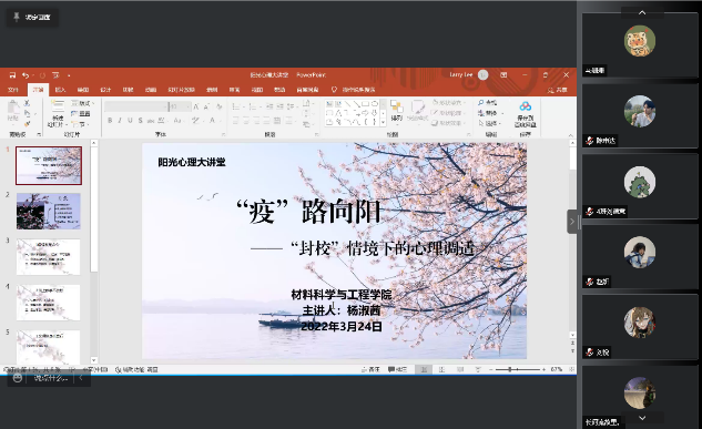 当前,全国上下正在齐心协力共同防护新冠疫情,疫情的反复让各个地方的防疫措施不断完善。为保障老员工在校以阳光积极的心态面对这突如其来的疫情,bevictor韦德国际举办了线上“阳光心理大讲堂”活动,由杨淑茜老师主讲,旨在帮助同学们以阳光积极的心理状态来应对自己的一些不良情绪,从而给同学们营造一个积极健康的生活氛围。