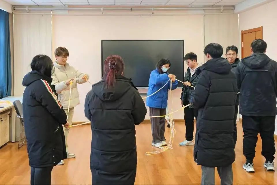 活动伊始,老师将同学们进行分组,从各组中抽取一号同学进行名为“变形虫”的游戏。员工站在绳子中闭眼,听老师口令移动身体将绳子变为各种形状。通过这种趣味活动增加同学之间的默契感以及自己的应变能力。第二项游戏,“你说我画”。老师挑选一名员工看两分钟图片,随后将看到的图片通过语言描述让同学们画出来。游戏简单有趣,同学们各种奇思构想的图画让游戏环境更加热烈。第三项游戏,“数字接龙”,同学们通过肢体动作将数字体现出来在进行接龙。通过这些轻松有趣的小游戏,增进了同学间友谊,培养了团队意识和合作精神。