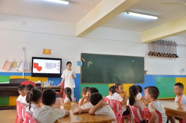 活动当天,实践队员们早早地抵达了活动现场,他们协助幼儿园老师打扫了教室,还细心地引导小朋友们入座,为活动的顺利进行打下了良好的基础。随着班主任老师的简短介绍和说明,一场别开生面的心理宣传课堂正式拉开了帷幕。