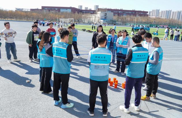 在“鼓动人心”项目中,五名队员需通过精准控制鼓绳张力与节奏,协作完成小球连续颠动。参赛队伍屏息凝神,以默契配合诠释“力出一孔”的团队智慧,每一次小球的腾空跃起,都是对专注力与抗压能力的生动考验。随后的“十人九足”竞速赛将活动推向高潮,十名队员脚踝相连,在“一二一”的口号中齐步疾行。即便偶有队伍因绑绳松动短暂停滞,队员们亦迅速调整状态,以坚韧意志完成30米冲刺,充分彰显“同舟共济”的协作精神。
