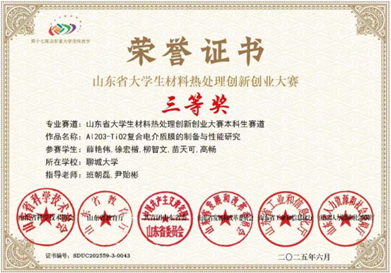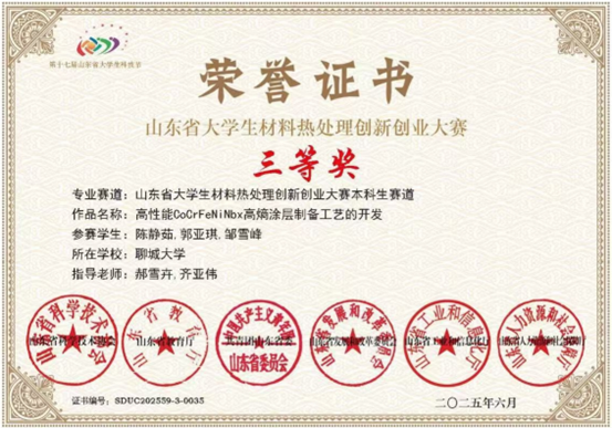 山东省老员工材料热处理创新创业大赛本科生赛道 |