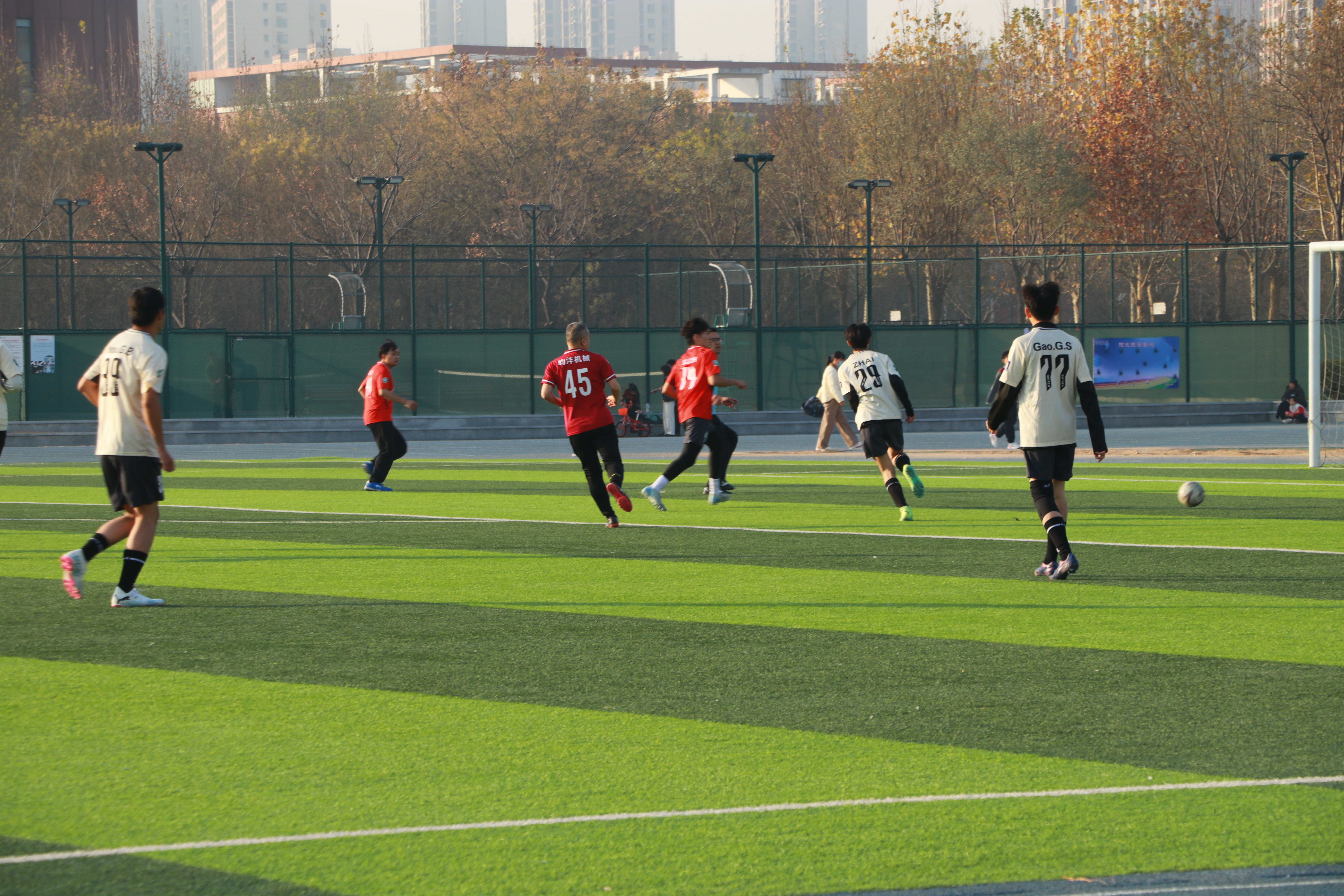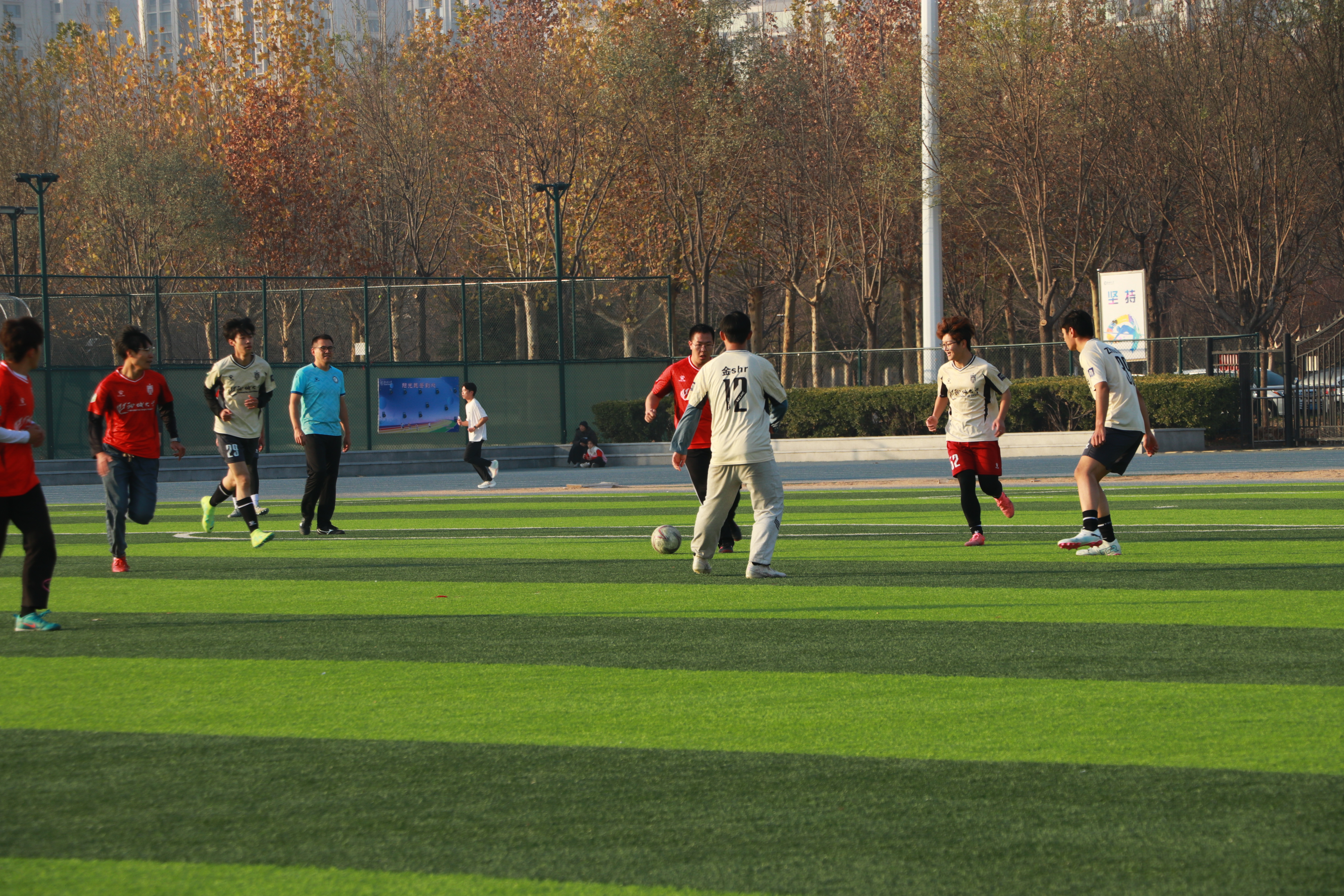 绿茵场上,员工们虽已离开校园多年,但奔跑的身影依然矫健。传切配合间,仿佛重回求学时光。师生员工同场竞技,比分已不重要,场上洋溢的是浓浓的师生情与同窗谊。