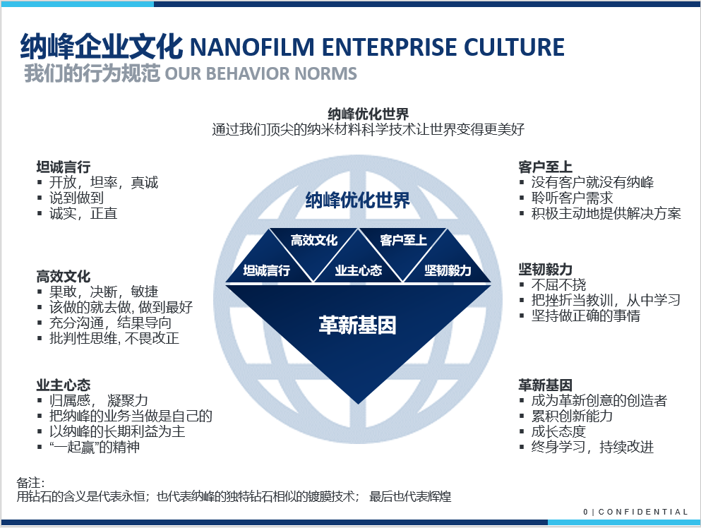 纳峰集团孵化自新加坡南洋理工大学, 1999年成立后经过多年的潜心发展,在FCVA过滤阴极真空电弧、先进真空镀膜设备、纳米精密制造、纳米材料为基础的水处理等方面拥有全球最为领先的技术;纳峰集团的上述先进技术,其核心是基于在纳米和原子的级别上操控材料,从而取得突破性的进展,解决各个行业瓶颈性的问题;纳峰集团的核心技术,目前已在3C、电子、工模具、汽车、纺织机械等行业里得到广泛应用,并且建立了大规模的生产服务能力;纳峰集团以史旭博士为核心,在研发、生产制造、运营、销售方面培养了一支经验丰富的优秀专业团队,并具备了国际先进的研发、设计、制造水平。纳峰凭借其独步全球的技术,在3C客户的供应链中,也是数项产品的独家供应商。