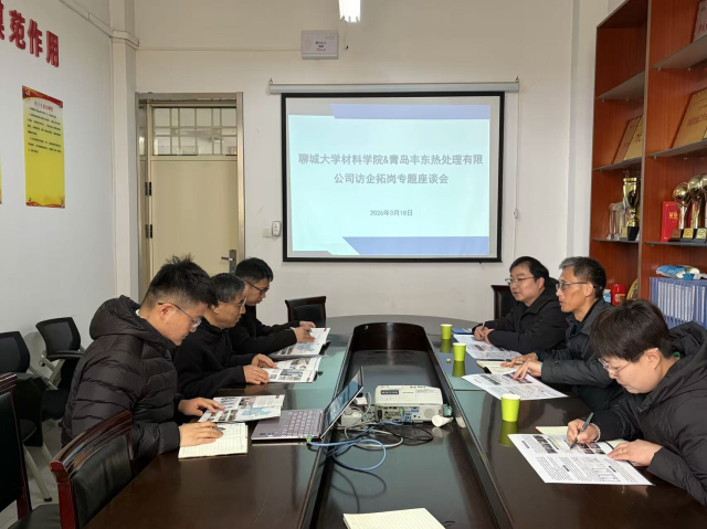 为深入贯彻落实产教融合战略,拓展毕业生就业渠道,2026年3月18日,bevictor韦德国际与青岛丰东热处理有限公司在东校区4#A121党员活动室联合开展访企拓岗专题座谈会。公司党委副书记郑永朝、金属材料与工程系主任赵性川、团委辅导员陆含,以及青岛丰东热处理有限公司综合管理部祝传升、郭春红,潍坊丰东热处理有限公司综合管理部申同川出席本次座谈会。